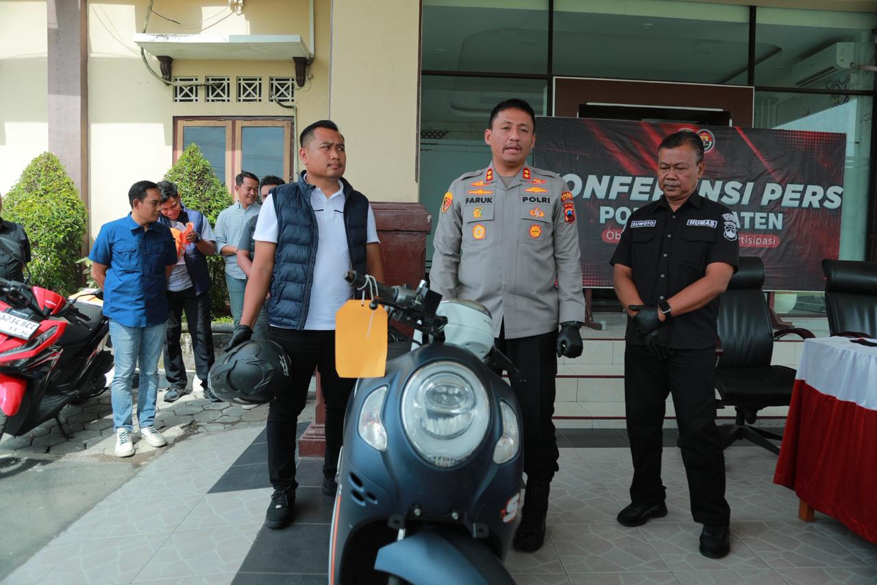Polres Klaten mengungkap kasus penipuan dan penggelapan sepeda motor bermodus perkenalan melalui aplikasi daring. Tersangka berinisial JS (31) berhasil diamankan kurang dari 24 jam setelah korban mela...