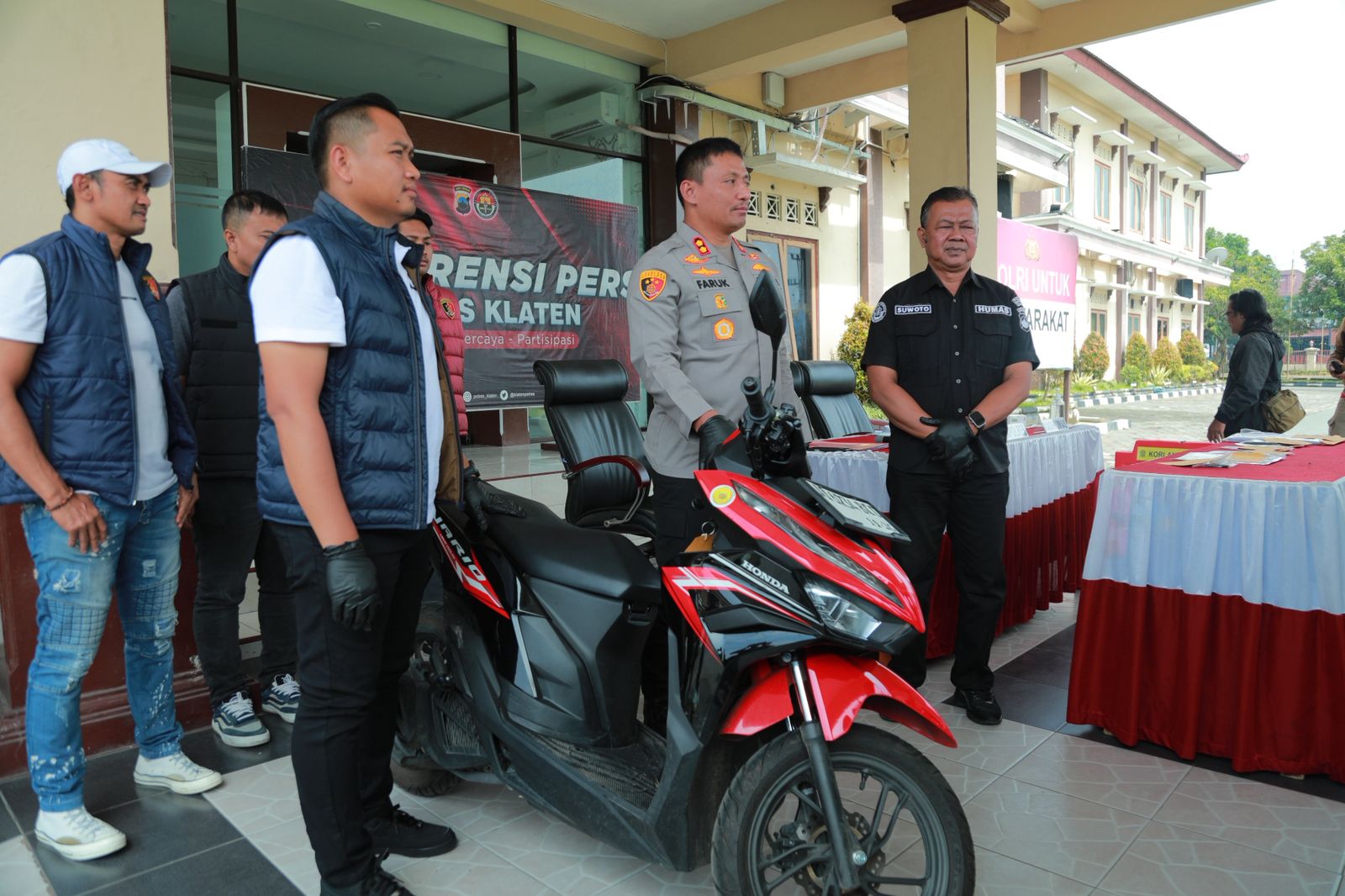 Polres Klaten mengungkap kasus pencurian sepeda motor (curanmor) yang terjadi di halaman parkir Lapangan Gelora Pemuda Pedan, Desa Kedungan, Kecamatan Pedan, Kabupaten Klaten. Pengungkapan kasus terse...